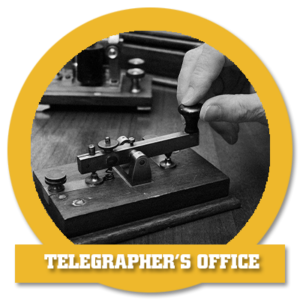 This diorama shows a typical telegraph office that could be found at a train depot in the early 20th century. It comes with a working “sounder” encouraging visitors to decode and send messages coming over the wire.